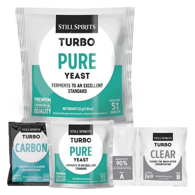 The complete solution for ultra-clean fermentation. Includes Pure Turbo Yeast, Turbo Carbon, and Turbo Clear — everything you need for the purest neutral base.