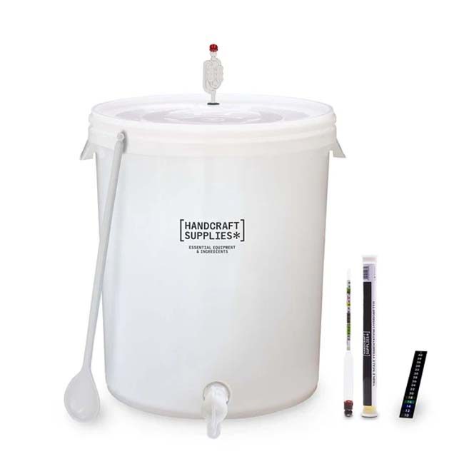 Fermenter barrel with accessories required to ferment beer, cider, spirits or wine.